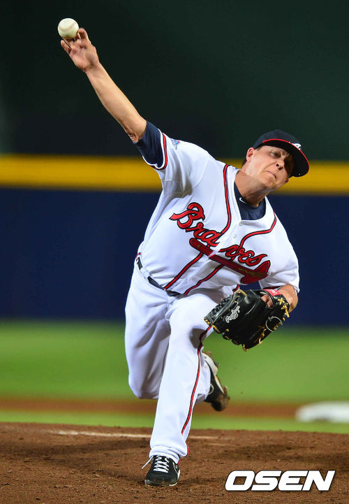 4일 (이하 한국시간) 미국 조지아 애틀랜타 터너필드에서 열린 2013 메이저리그 애틀랜타 브레이브스와 LA 다저스의 내셔널리그 디비전시리즈(5전3선승제) 1차전,2회초 애틀랜타 메들렌 선발투수가 역투하고 있다