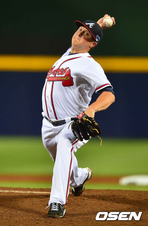 4일 (이하 한국시간) 미국 조지아 애틀랜타 터너필드에서 열린 2013 메이저리그 애틀랜타 브레이브스와 LA 다저스의 내셔널리그 디비전시리즈(5전3선승제) 1차전, 1회초 애틀랜타 선발투수 메들렌이 역투하고 있다