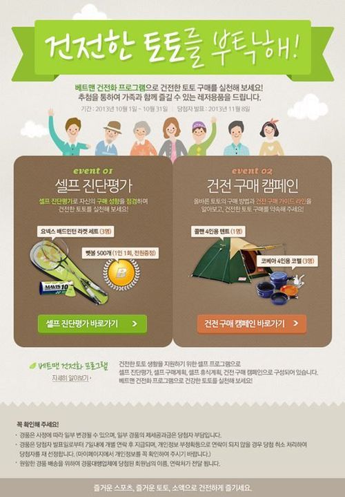 건전 구매 실천을 약속한 사람에게는 추첨을 통해 4인용 텐트(1명)과 코베아 4인용 코펠(3명)을 선사한다.