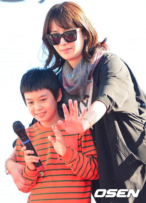 배우 황인영과 아역배우 정윤석이 팬들에게 인사하고 있다.