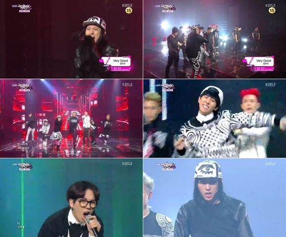 블락비는 4일 오후 방송된 KBS 2TV '뮤직뱅크'에서 세 번째 미니앨범 '베리 굿(Very Good)' 동명의 타이틀곡 '베리 굿' 무대를 선보였다.
