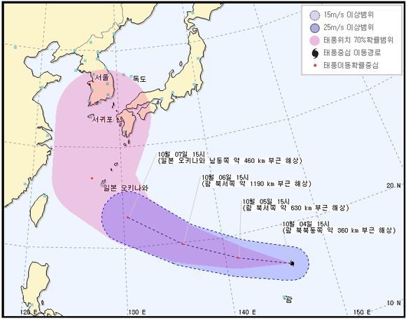 [OSEN=이슈팀] 24호 태풍 다나스가 발생해 빠르면 9일 제주도를 지날 것으로 예측되고 있다.