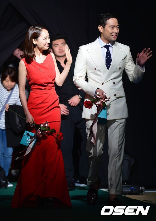 4일 오후 부산 해운대 백사장에서 열린 '제 18회 부산국제영화제(BIFF)' APAN 스타로드 블루카펫 행사에서 김민정과 천정명이 발걸음을 옮기고 있다.