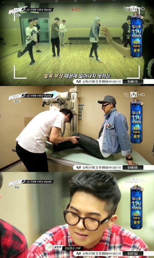그러나 연습을 하던 도중 송민호가 발목부상을 당했다. 병원을 찾아 정밀검사를 받은 결과, 의사는 “안쪽 인대가 많이 다쳤다. 춤추거나 발에 무리가 가는 동작을 하면 안 된다”고 말했다.