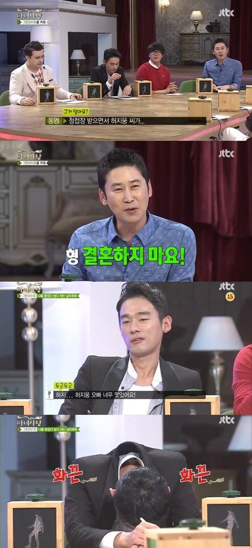 이날 허지웅은 “샘이 오늘 청첩장을 돌렸다”며 샘의 결혼소식을 알렸다. 이에 신동엽은 “허지웅씨가 청접장 받으면서 ‘형 결혼하지 마요’라고 했다”고 폭로해 스튜디오를 웃음바다로 만들었다.