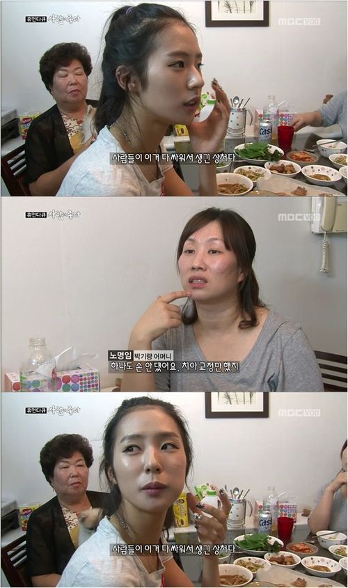 박기량 씨의 어머니는 5일 오전 방송된 MBC 다큐멘터리 ‘휴먼다큐 사람이 좋다’에서 성형을 한 것이 아니냐는 제작진의 질문에 “손 하나도 안 댔다”고 답했다.