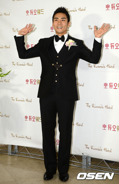 개그맨 이정수가 5일 오후 서울 잠원동 더리버사이드호텔에서 열리는 결혼식에 앞서 포토타임을 갖고 있다.