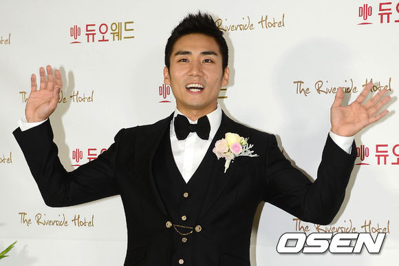 개그맨 이정수가 5일 오후 서울 잠원동 더리버사이드호텔에서 열리는 결혼식에 앞서 포토타임을 갖고 있다.