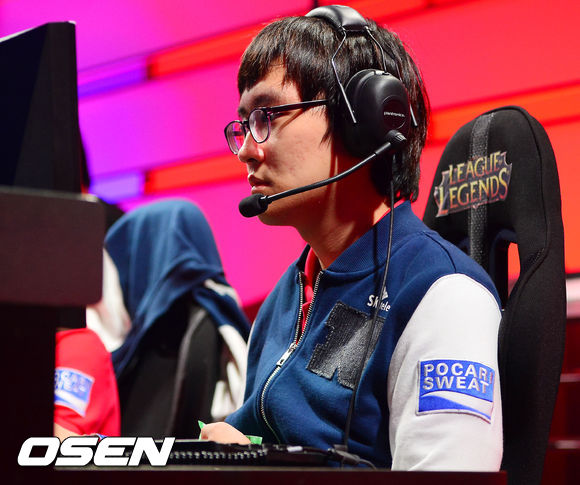 4일 (이하 한국시간) 미국 캘리포니아 로스앤젤레스의 스테이플스 센터에서 'LOL 시즌3 월드챔피언십(이하 롤드컵)' 결승전, 한국팀 SK텔레콤 T1과 로얄클럽 황주의 경기가 열릴 예정인 SKT 푸만두 이정현이 게임을 플레이하고 있다.