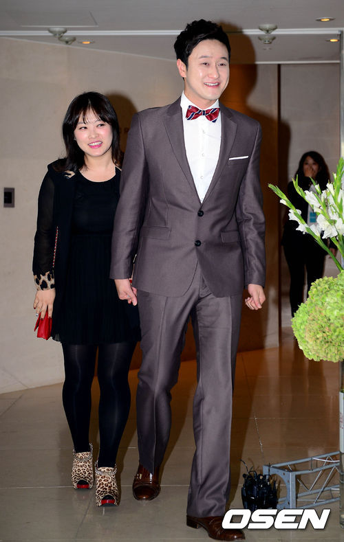 5일 오후 서울 잠원동 더리버사이드호텔에서 열리는 개그맨 이정수의 결혼식에 참석한 김원효, 심진화가 포토타임을 위해 걸어오고 있다.