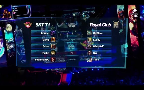 그리고 상대편인 로얄클럽 황주의 탑 '갓라이크'는 럼블을, 정글 '럭키'는 자르반, 중단 'Wh1t3zZ'는 카사딘,