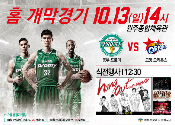 이날 개막전에는 필독이 소속된 빅스타의 축하공연을 포함한 다채로운 식전행사가 오후 12시 30분부터 진행된다. 개막전 티켓예매는 원주 동부 홈페이지(www.dbpromy.co.kr)와 OK티켓(www.okticket.com / 1599-4290)에서 할 수 있다.