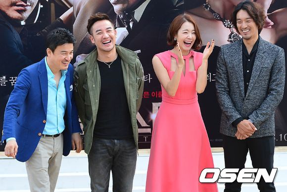 박중훈 감독, 소이현, 엄태웅, 김민준이 5일 오후 부산 해운대 비프빌리지 야외무대서 열린 영화 '톱스타'(감독 박중훈) 오픈토크에 참석해 포토타임을 준비하며 환하게 미소짓고 있다.