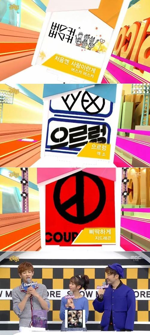 1위 후보에 오른 엑소는 오랜만에 무대에서 '으르렁'을 선보였으며, 엑소 멤버 찬열은 지난주 시우민에 이어 특별 MC로 나서 노홍철, 김소현 등과 호흡을 맞췄다.