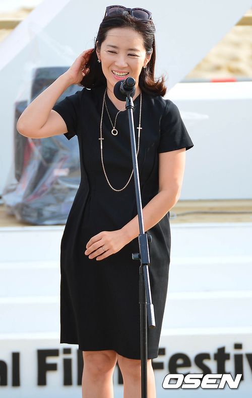 배우 윤유선이 5일 오후 부산 해운대 비프빌리지 야외무대서 열린 영화 '또 하나의 가족'(감독 김태윤) 야외 무대인사에 참석해 인사말을 하고 있다.