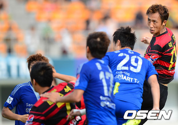 후반 추가시간 포항 박성호가 동점골을 성공시키고 있다./sunday@osen.co.kr