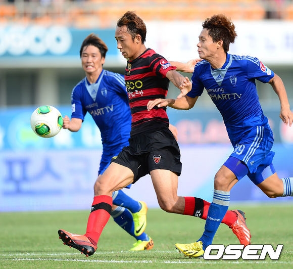 포항은 5일 오후 포항종합운동장에서 열린 K리그 클래식 2013 31라운드 수원과 홈경기서 전반 17초 만에 중앙 수비수 곽광선의 자책골로 1-0 리드를 잡았다. 후반 중반 정대세에게 2골을 내주며 패색이 짙었던 포항은 추가시간 박성호의 극적인 헤딩 동점골에 힘입어 2-2 무승부를 기록했다.
