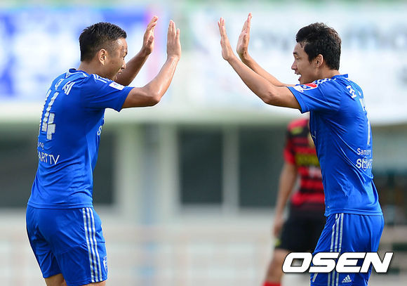 후반 수원 정대세가 동점골을 성공시키고 조동건과 환호하고 있다./sunday@osen.co.kr