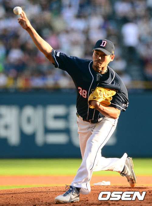 5일 오후 서울 잠실구장에서 열린 '2013 한국야쿠르트 세븐 프로야구' LG 트윈스와 두산 베어스의 경기 두산 선발 노경은이 역투하고 있다.
