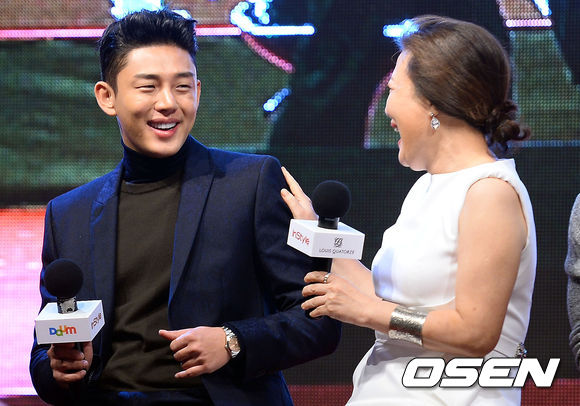 유아인이 미소짓고 있다.