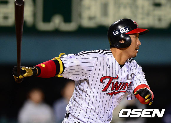 5일 오후 서울 잠실구장에서 열린 '2013 한국야쿠르트 세븐 프로야구' LG 트윈스와 두산 베어스의 경기 6회말 1사 1,3루 이병규가 1타점 적시타를 치고 있다.