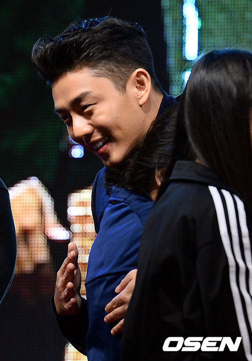 유아인이 팬과 포옹을 나누고 있다.