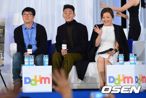 안권태 감독, 배우 김해숙, 유아인이 5일 오후 부산 해운대 비프빌리지 오픈 스튜디오에서 열린 영화 '깡철이'(감독 안권태) 스타&쉐이크 토크 행사에 참석해 팬들에게 인사하고 있다.