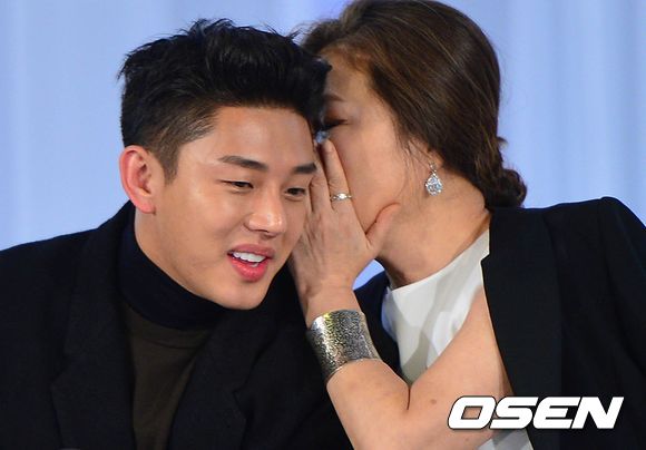 배우 유아인과 김해숙이 5일 오후 부산 해운대 비프빌리지 오픈 스튜디오에서 열린 영화 '깡철이'(감독 안권태) 스타&쉐이크 토크 행사에 참석해 대화를 나누고 있다.