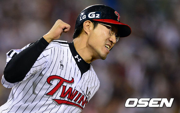5일 오후 서울 잠실구장에서 열린 '2013 한국야쿠르트 세븐 프로야구' LG 트윈스와 두산 베어스의 경기 8회말 1사 2루 정성훈이 1타점 2루타를 치고 달리고 있다.