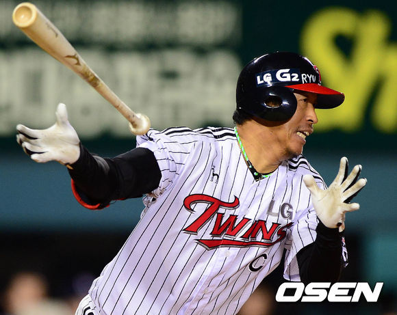 LG의 ‘캡틴’ 이병규(9번)가 결정적 순간 한 방을 날리며 통산 최고령 타격왕에 이름을 올렸다.