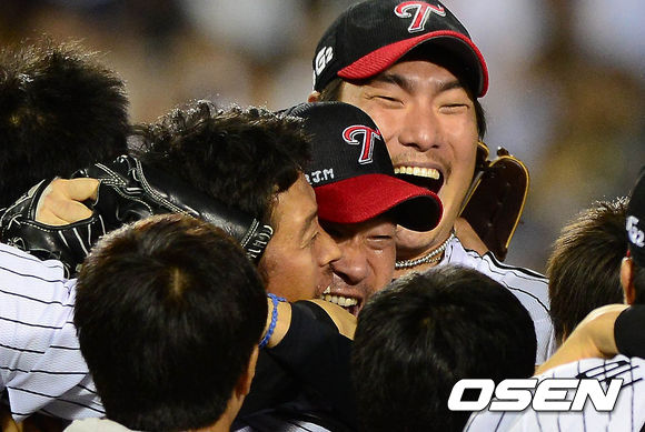 LG는 5일 잠실구장에서 열린 ‘2013 한국야쿠르트 세븐 프로야구’ 두산과 시즌 16차전에서 5-2로 승리, 이날 넥센이 한화에 패하며 시즌 마지막날 극적으로 2위를 차지했다.