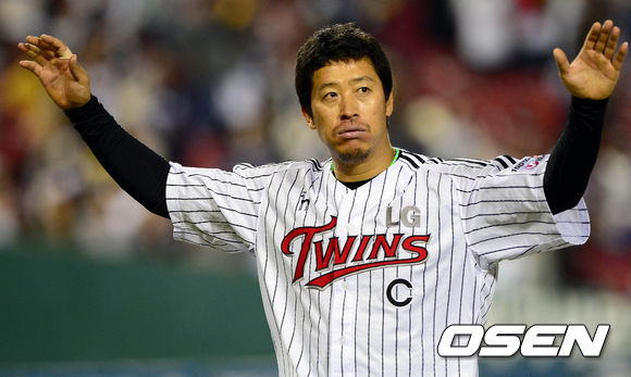 5일 오후 서울 잠실구장에서 열린 '2013 한국야쿠르트 세븐 프로야구' LG 트윈스와 두산 베어스의 경기 종료 후 이병규가 승리를 기뻐하며 그라운드를 빠져나가고 있다.