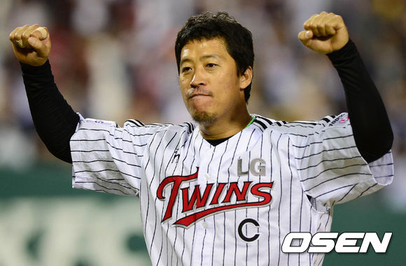 5일 오후 서울 잠실구장에서 열린 '2013 한국야쿠르트 세븐 프로야구' LG 트윈스와 두산 베어스의 경기 종료 후 이병규가 승리를 기뻐하고 있다.