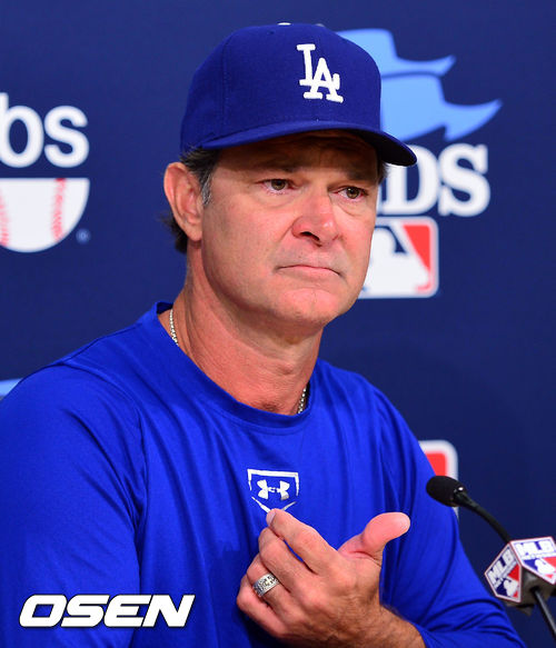 6일 (이하 한국시간) 미국 캘리포니아주 로스앤젤레스 다저스타디움에서 2013 메이저리그 LA 다저스와 애틀랜타 브레이브스와 경기를 하루 앞두고 3차전 다저스 선발로 나서는 류현진이 기자회견 및 훈련을 가졌다. 돈 매팅리 감독이 기자회견을 하고 있다.