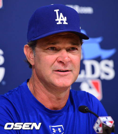 6일 (이하 한국시간) 미국 캘리포니아주 로스앤젤레스 다저스타디움에서 2013 메이저리그 LA 다저스와 애틀랜타 브레이브스와 경기를 하루 앞두고 3차전 다저스 선발로 나서는 류현진이 기자회견 및 훈련을 가졌다.돈 매팅리 감독이 기자회견을 하고 있다.
