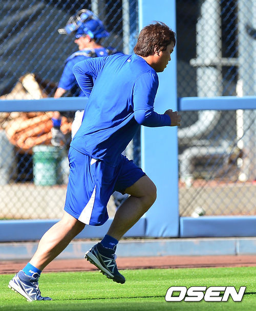 6일 (이하 한국시간) 미국 캘리포니아주 로스앤젤레스 다저스타디움에서 열린 2013 메이저리그 LA 다저스와 애틀랜타 브레이브스와 경기를 하루 앞두고 3차전 다저스 선발로 나서는 류현진이 기자회견 및 훈련을 가졌다. 류현진이 러닝을 하고 있다.