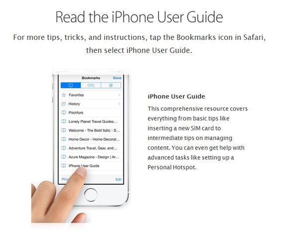 애플은 가이드 맨 마지막에 사파리에서 설명서 페이지를 북마크 해두라는 조언도 잊지않았다.애플이 그 동안 제품별 PDF 버전의 사용 설명서를 제공해오긴 했지만 홈페이지에 직접적으로 게시하기는 처음이다.