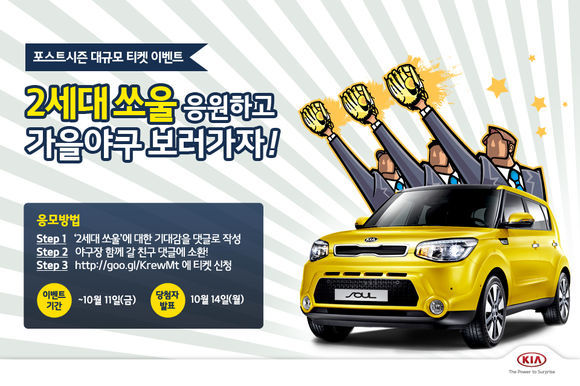 프로야구 자동차부문 공식 후원사 기아자동차㈜가 2013 프로야구 플레이오프 및 한국시리즈 티켓을 제공하는 이벤트를 실시한다.