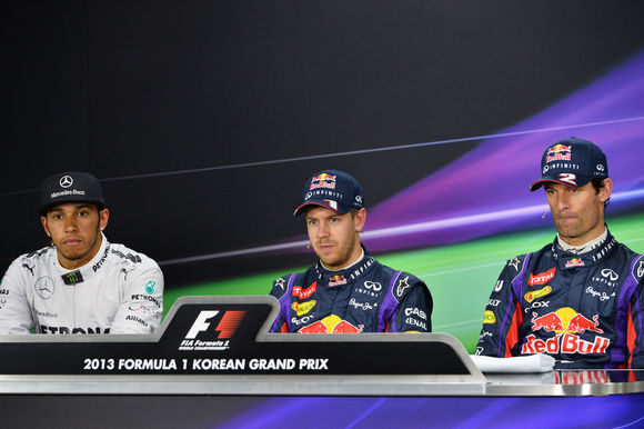 루이스 해밀턴, 세바스찬 페텔, 마크 웨버(왼쪽부터)./ F1조직위원회.