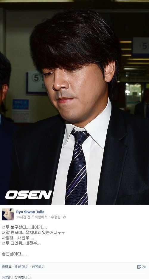 류시원은 6일 오전 자신의 페이스북에 "너무 보고싶다. 내 아가. 내 딸 현서야. 잘 지내고 있는거니. 사랑해. 내 전부. 너무 그리워. 내 전부. 슬픈 날이다"라는 글을 올렸다. 이날은 류시원의 생일로 생일을 맞아 딸 현서 양에 대한 그리움과 이혼 분쟁 등으로 괴로운 심경을 드러낸 것으로 보인다.