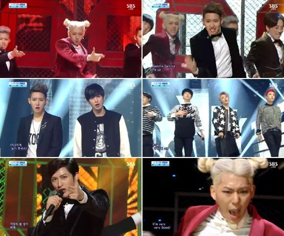 블락비는 6일 방송된 '인기가요'에서 새 미니앨범 수록곡 '빛이 되어줘'와 '베리 굿(VERY GOOD)'을 차례로 열창했다.