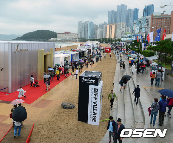 6일 하정우 감독, 정경호 고성희 주연의 '롤러코스터' 무대인사가 열리는 해운대 BIFF 빌리지에 비가 내리고 있다.