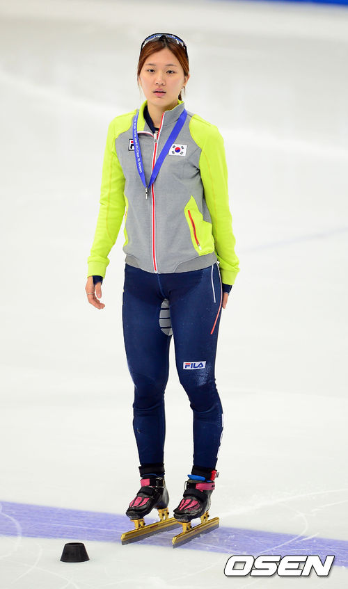 여자부 1000m 결승전 2위를 차지한 박승희가 은메달을 목에 걸고 있다.