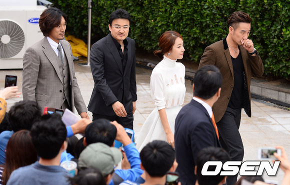 박중훈 감독을 비롯해 배우 김민준, 소이현, 엄태웅이 입장하고 있다.