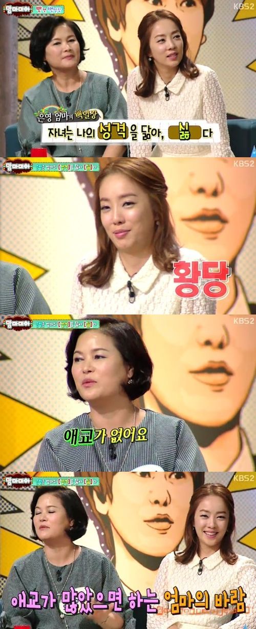 이날 박은영의 어머니는 "박은영은 나의 성격을 닮아 싫다. 애교가 없고 무뚝뚝하다"라고 말했다.