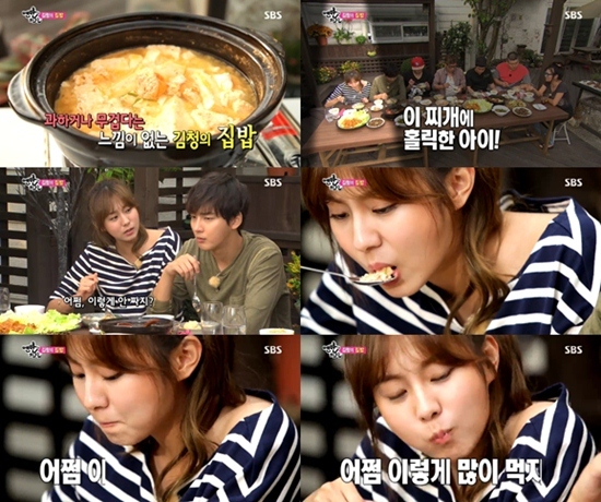 특히 이날 유이는 걸그룹의 내숭 없이 음식을 맛있게 먹는 모습을 보여줘 눈길을 끌었다. 유이는 김청의 비법이 담긴 명란두부찌개를 맛보며 무아지경에 빠졌다. 김청과 다른 멤버들은 대화를 나눴지만 유이는 오로지 찌개를 먹는데 집중해 웃음을 자아냈다.