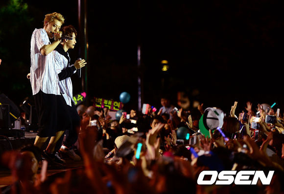6일 오후 서울 강남구 코엑스 앞 영동대로 코엑스 특설무대에서 열린 '샤이니 컴백 스페셜 인 강남 한류 페스티벌'(한류 페스티벌)에서 엑소가 멋진 무대를 선보이고 있다.