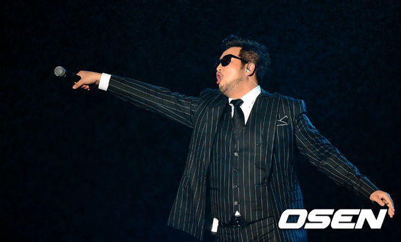 가수 김태우가 화려한 무대를 펼치고 있다.