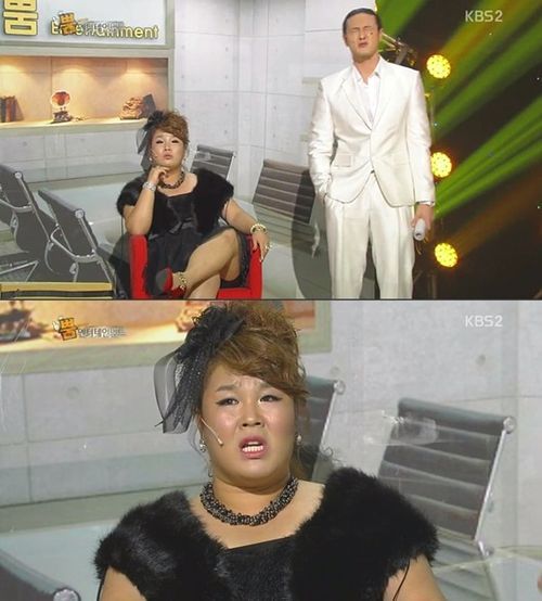 이날 방송에서 김민경은 잘나가는(?) 여배우답게 ‘아기병사’로 화제를 모으고 있는 제국의 아이들 박형식을 언급했다. 김민경은 등장과 함께 “사장님 나왔어~”라며 귀엽게 얘기를 시작했고 “나 남자 만나. 기사 내줘. 아기병사 박형식”이라고 말해 관객의 환호를 이끌어냈다.