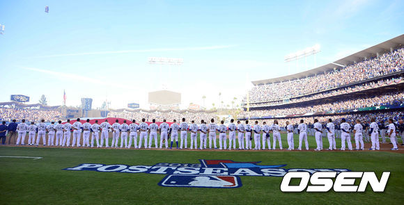 7일 (이하 한국시간) 미국 캘리포니아주 로스앤젤레스 다저스타디움에서 열린 2013 메이저리그 LA 다저스와 애틀랜타 브레이브스의 디비전시리즈 3차전 경기에 앞서 식전행사가 진행되고 있다.
